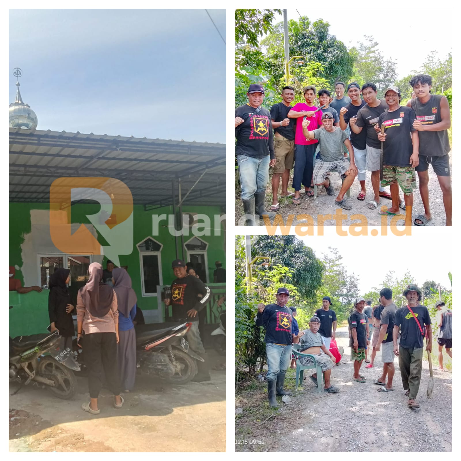 Selain membersihkan sampah di sepanjang jalan, para peserta juga melakukan penataan halaman masjid, memangkas rumput liar, serta membersihkan area tempat wudhu. Kegiatan ini berlangsung sejak pagi hari dengan penuh semangat kebersamaan.